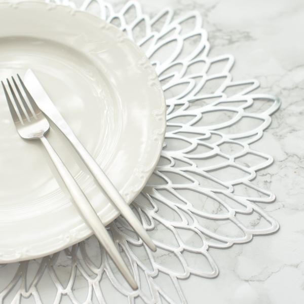 【ダリアランチョンマット(シルバー)/丸形 おしゃれ 水洗い可】はアウトレット商品です。